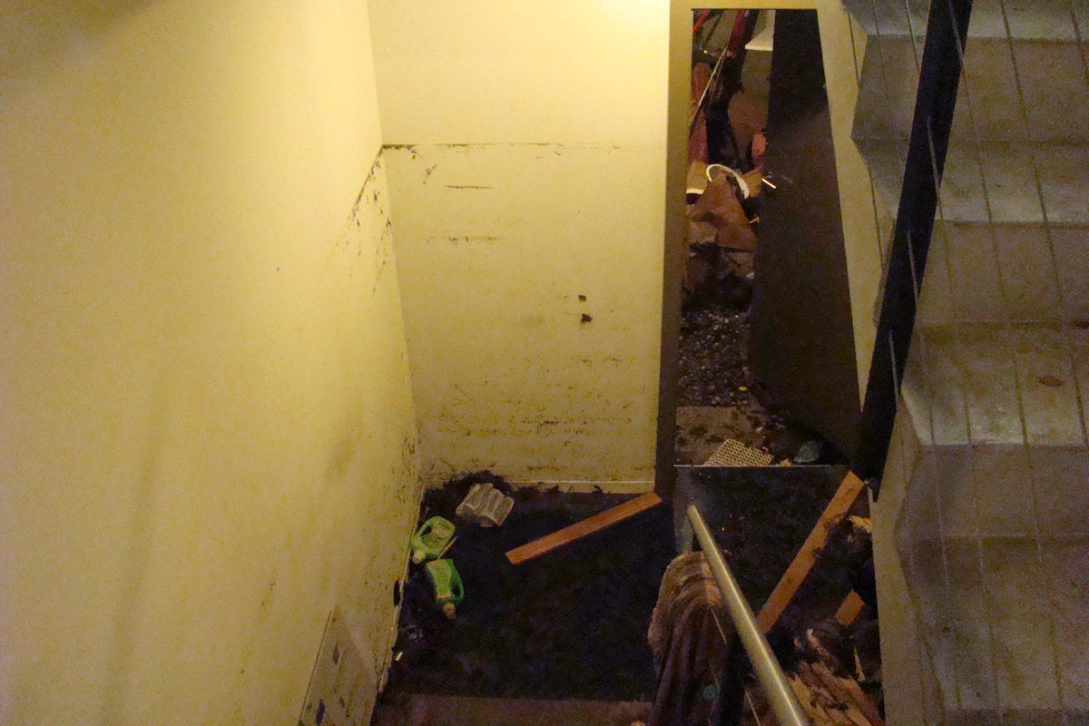 nach einer riesigen überschwemmung im dezember 2013 in bourguillon/bürglen wurde im verlauf der renovationsarbeiten am haus auch der alte musikkeller unter professioneller beratung in ein tonstudio umgebaut und fertig eigerichtet.
