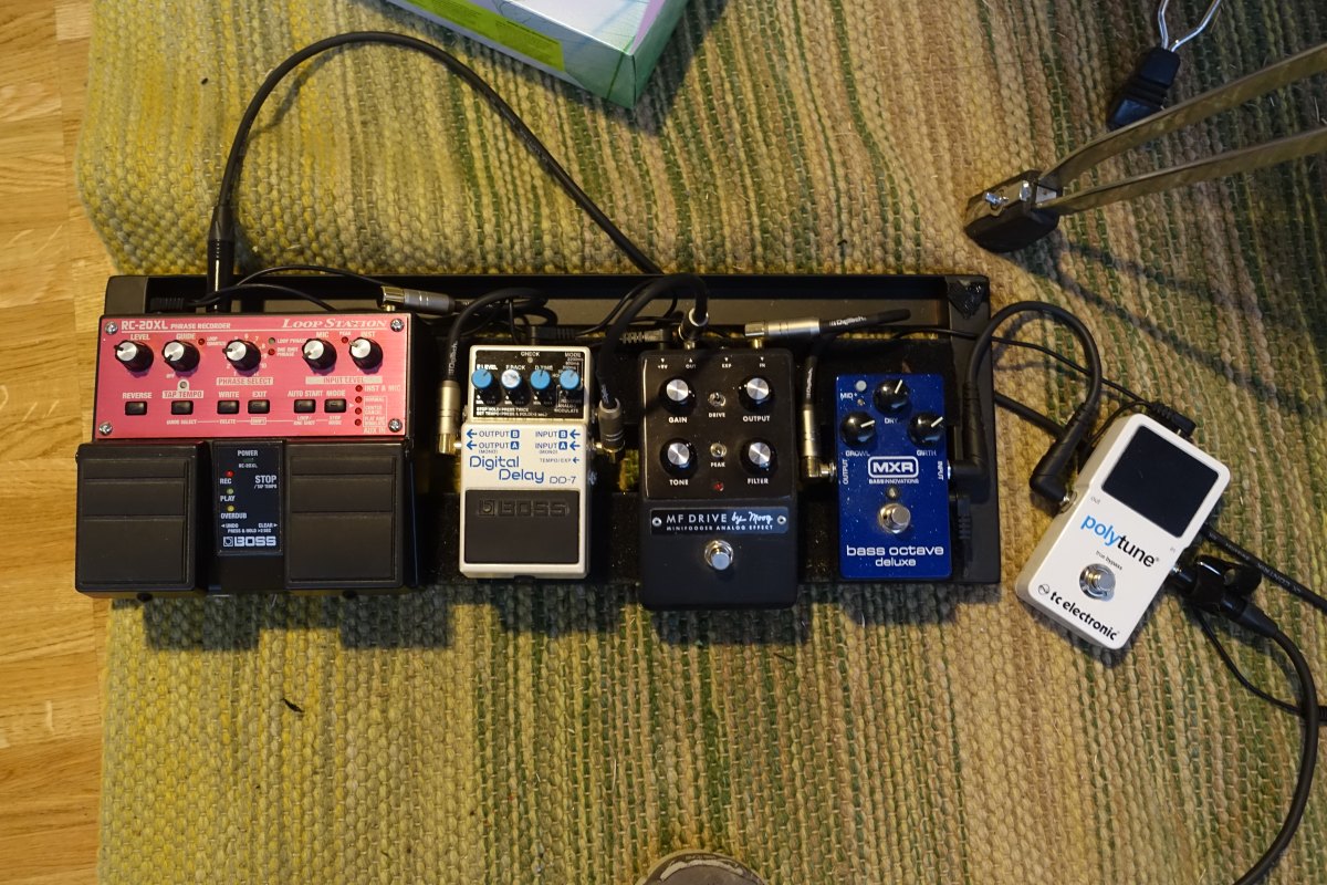 - fender telecaster / godin core / gibson les paul custom / fender jazz bass / hohner halbakustik-bass/BR ukulele / hohner melodica student 32 / okarinen